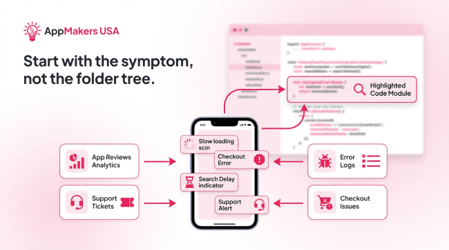 The first few hours in an unfamiliar codebase are where bad assumptions get made, time gets wasted, and expensive mistakes start. Read too narrowly and you miss the real failure point. Read too broadly and you burn days without learning what actually matters. The difference is having a method, and in this article, we will explore the methodology that AppMakers USA follows before we fix your app.