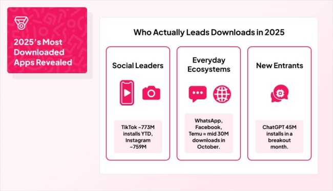 Even though the app landscape keeps shifting, 2025’s global download leaders tell a simple story: attention still concentrates around a small group of giants.
