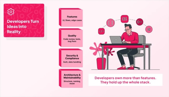 On real projects, developers are the people who turn wireframes and user stories into shipping features, fix the things that break at the worst time, and keep performance, security, and maintainability from drifting into chaos. Their work sits between product, design, and back end, and the way they handle that overlap is usually what decides whether a release goes smoothly or stalls.