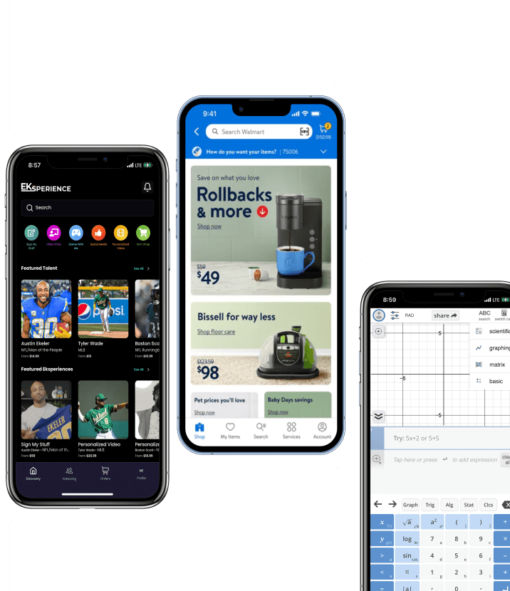Our successful projects include apps like ClassCalc, which has over 100,000 downloads, Walmart, and Eksperience, connecting fans with celebrities.
